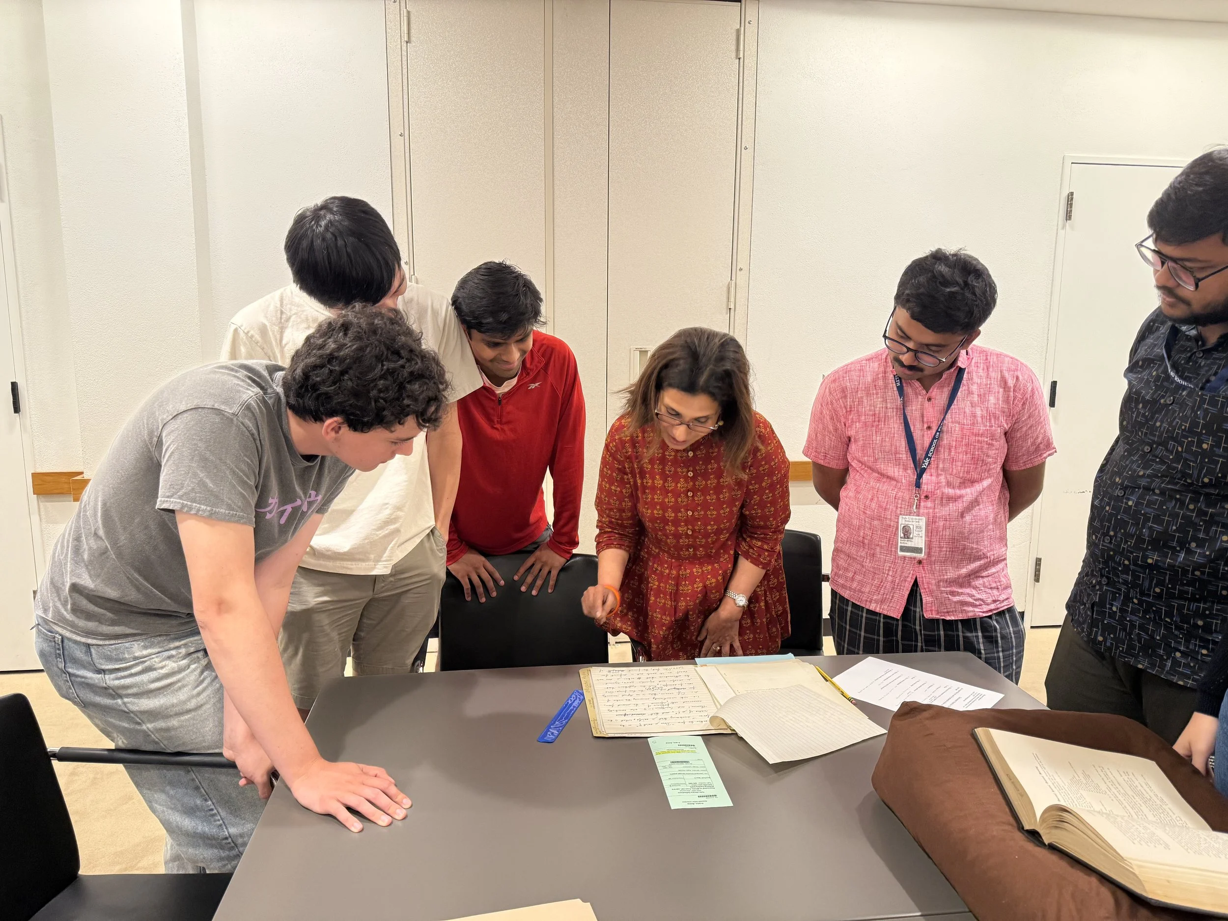 BDSY students reviewing letters from legendary Indian statistician PC Mahalanobis at the Beinecke Rare Book and Manuscript Library.